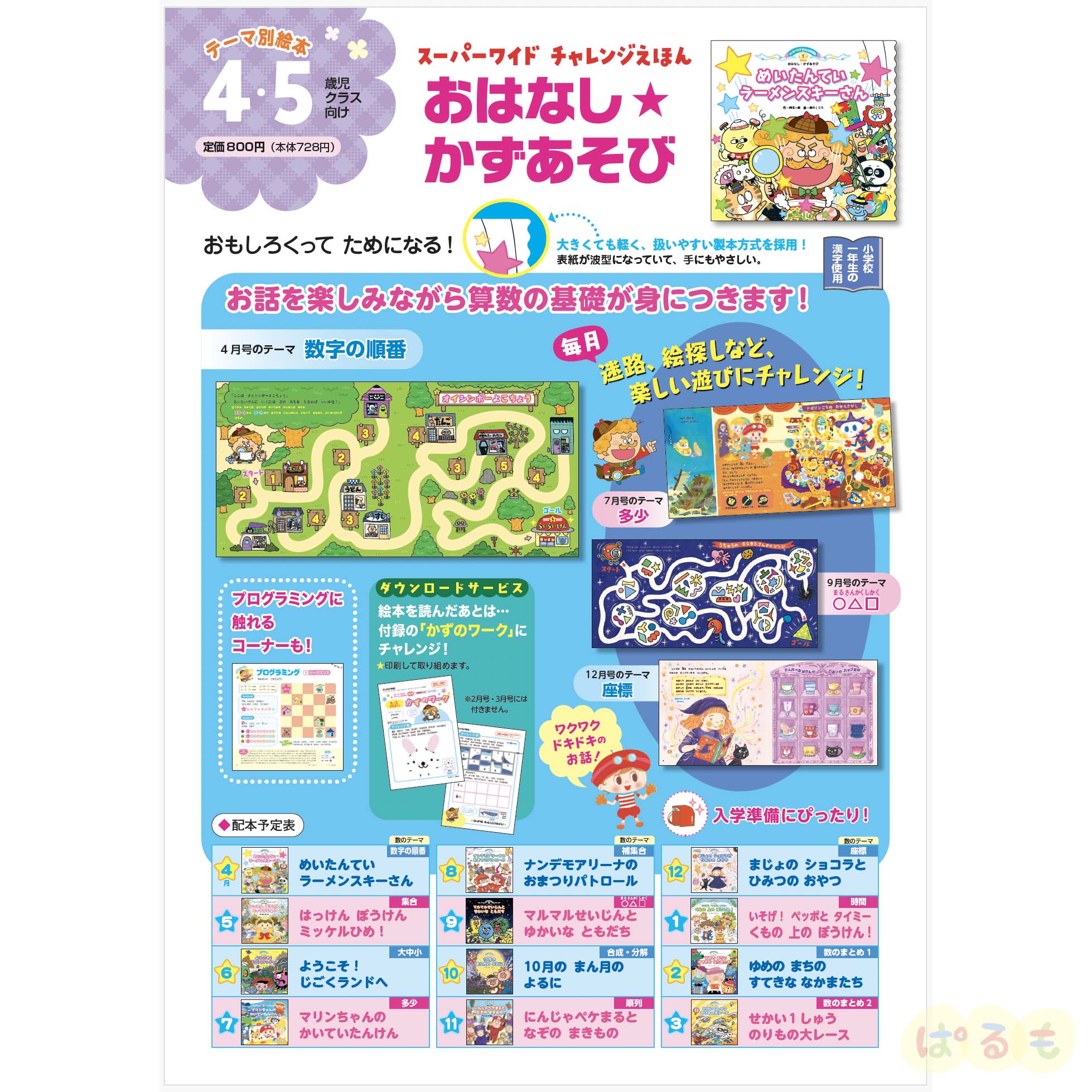 算数の基礎が身につく絵本です。毎月、楽しい迷路や絵探しにチャレンジ!