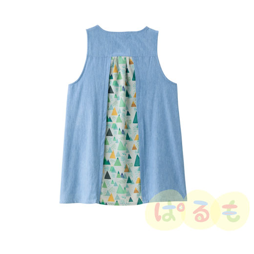 背中が大きく開くので着脱がらくちんなスモックです。袖先はリブ付き。