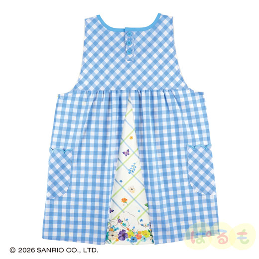 お花がいっぱい!花に囲まれたシナモンがかわいいエプロンです。ポケットはサイドポケットで入口がスカラップになっています。