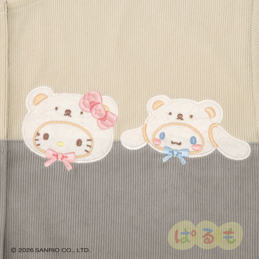 キティとシナモンがしろくまさんになっちゃった!?コーデュロイ素材のスモックです。袖はリブ付き。"