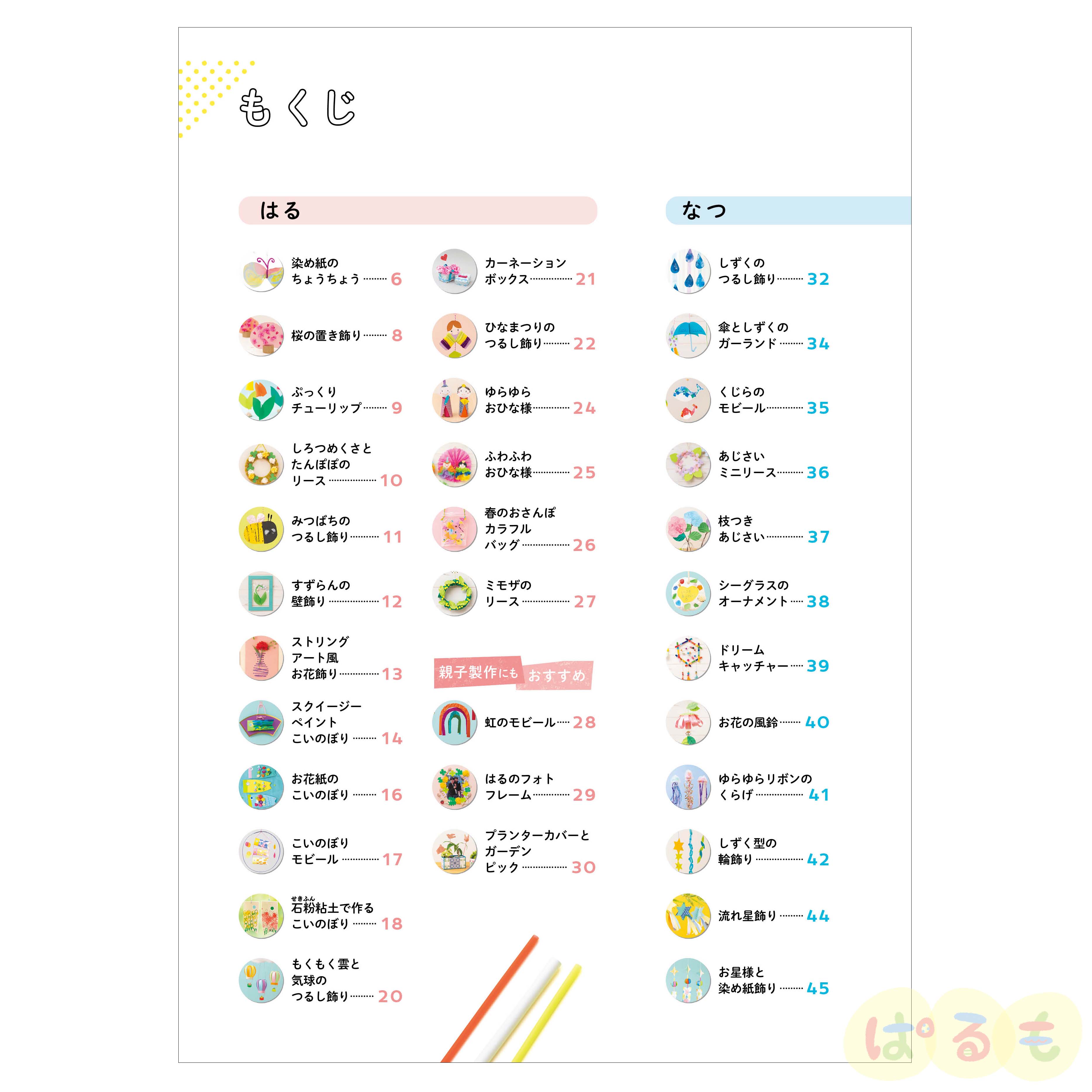 園や家庭でこどもと作れる、おしゃれ感や季節感を盛り込んだ製作遊びアイデアを102案掲載! キャラクターに頼らないおしゃれでナチュラルな作品をこどもたちと一緒に作ってみましょう。