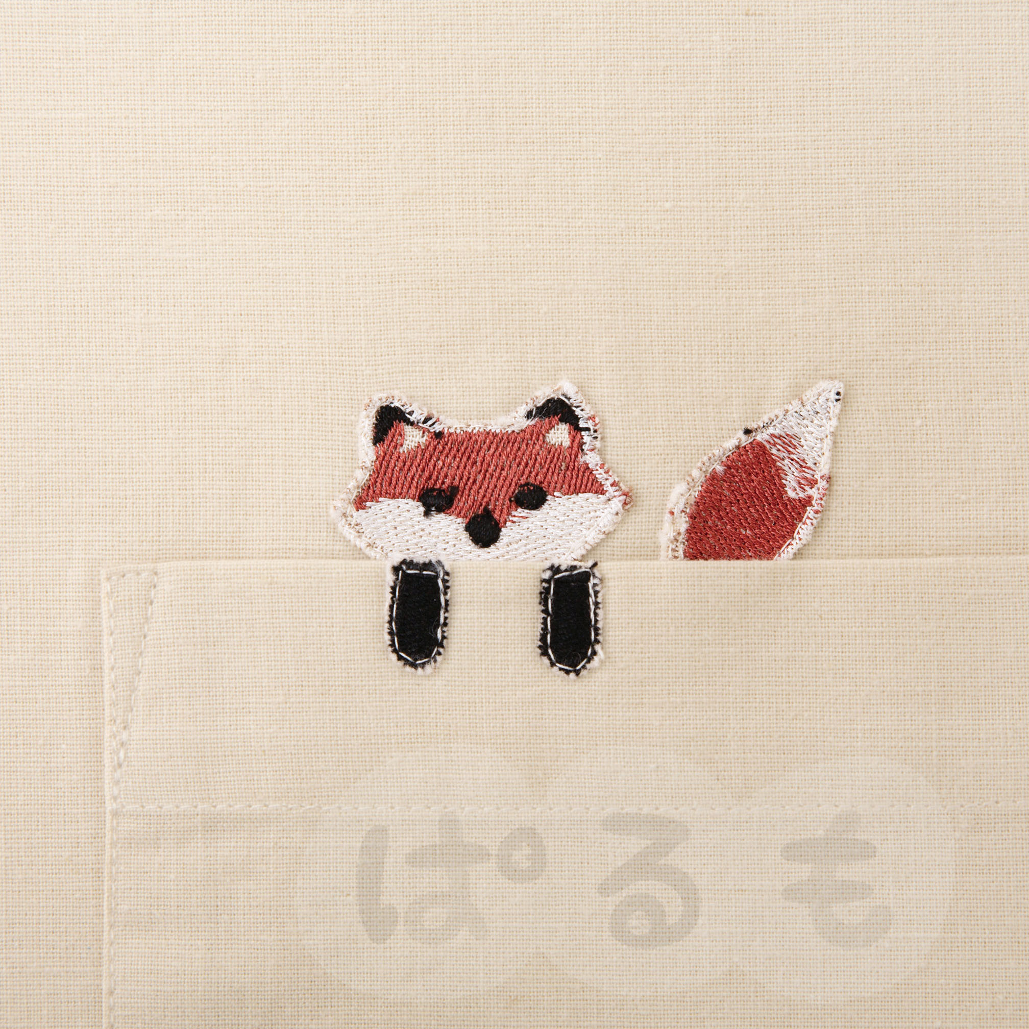 オフホワイトにはきつね、ネイビーには黒猫の刺しゅうが入っています。