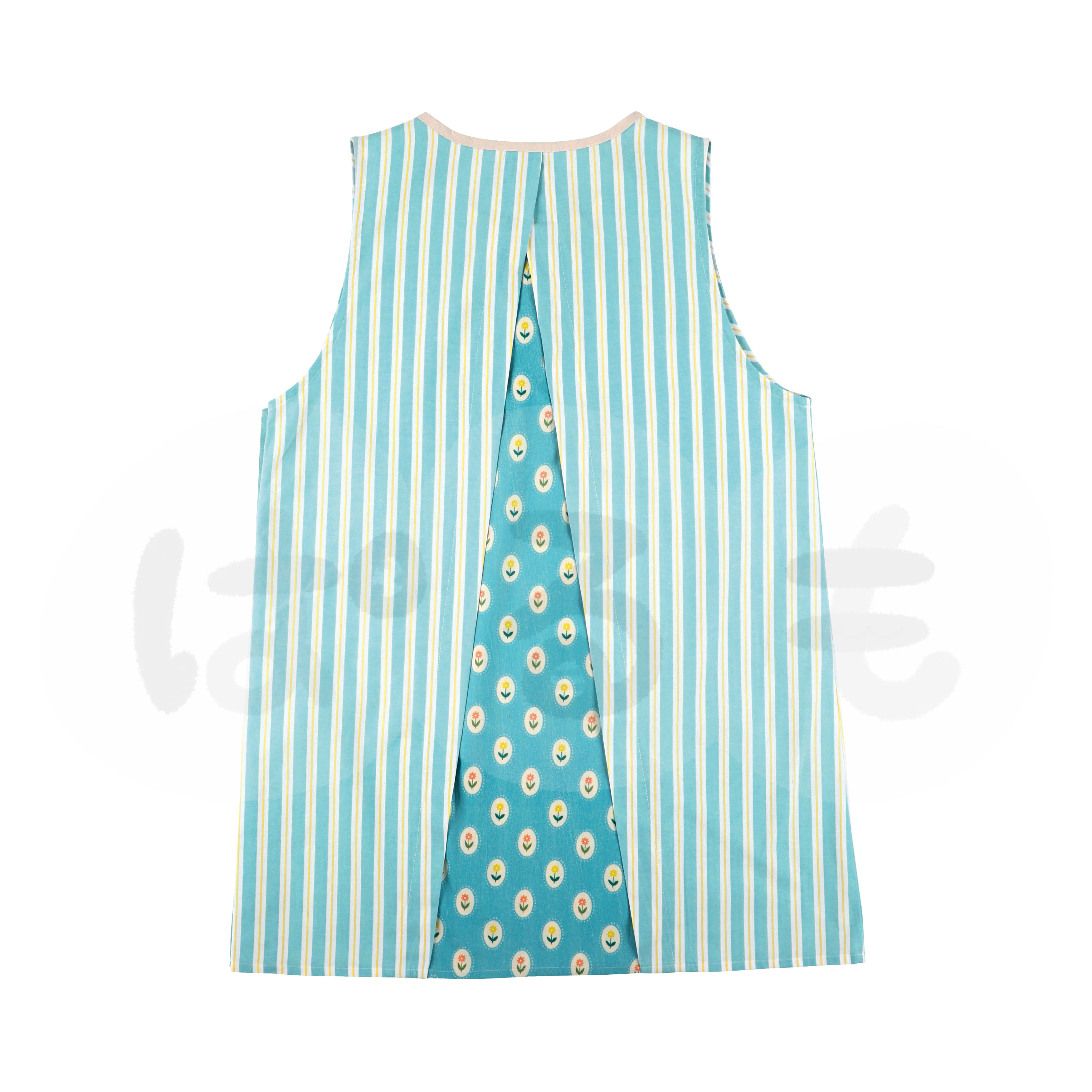 さわやかストライプとレトロかわいい花柄の組み合わせが北欧っぽいエプロンです。