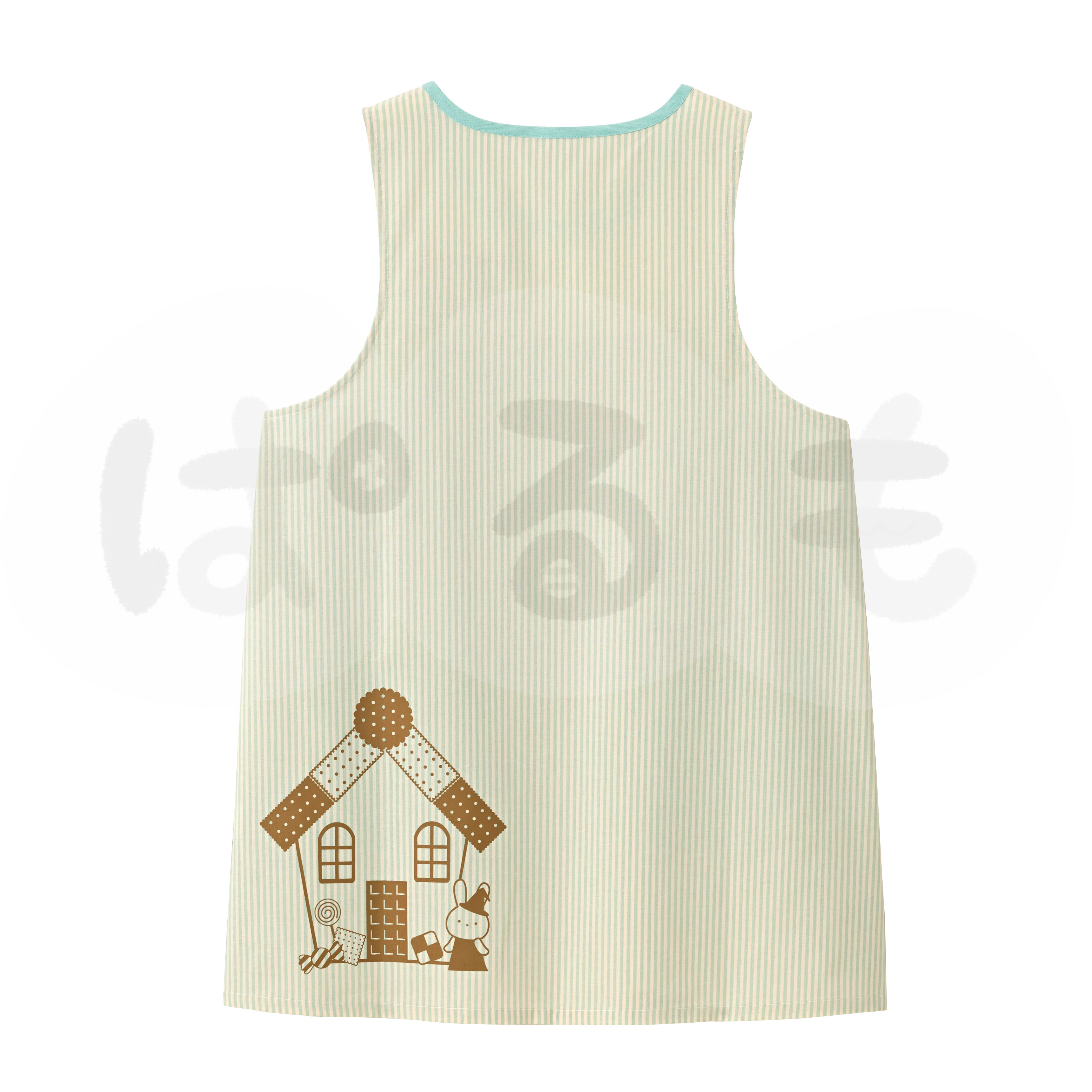 お菓子のおうちのプリントがかわいい「ヘンゼルとグレーテル」をイメージしたエプロンです。