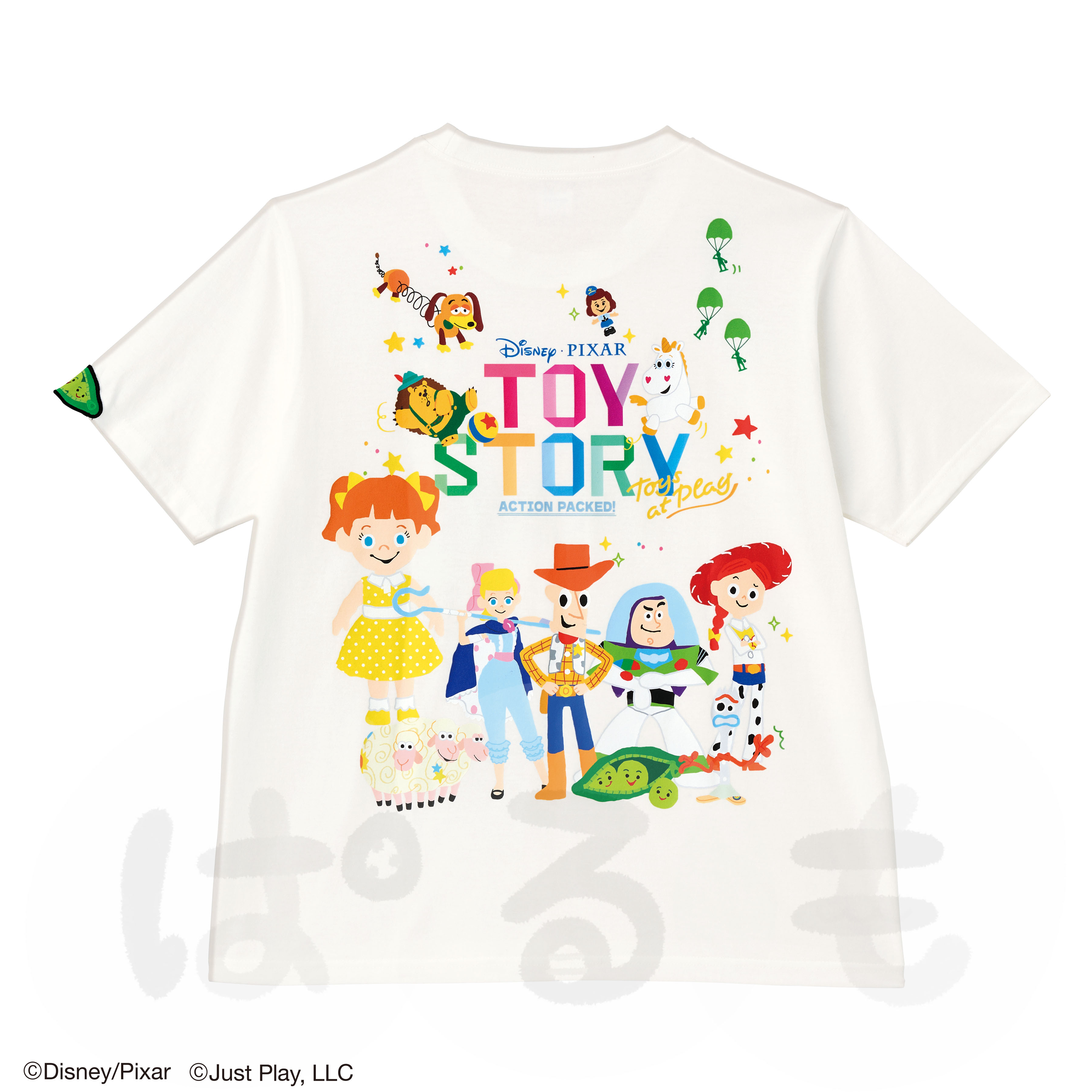 袖のはみ出しアップリケがかわいい『トイ・ストーリー』のTシャツです。