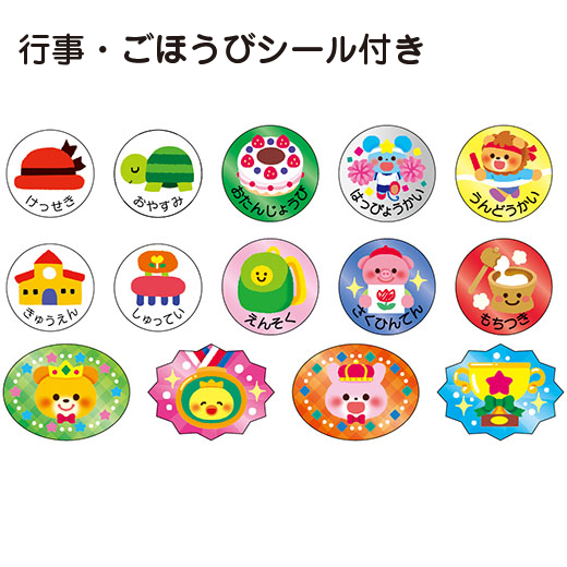 【内容】絵柄=各月28種類28日分 おやすみ・欠席・休園・ごほうび・行事シール付き(15シート入り)