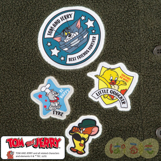 プリント生地がワッペンされたボアフリーススモックです。ひとつひとつのワッペンがかわいい!