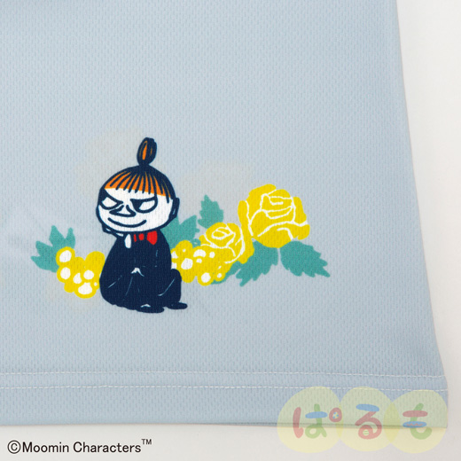 ムーミンママとリトルミイがお花を壁に描いています。ほんわか雰囲気が優しいチュニックTシャツです。後ろ右裾にリトルミイがいます。