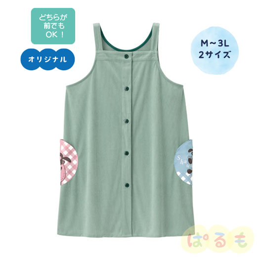 前と後ろどちらにしてもOKなエプロンです。丸いサイドポケットがかわいい!