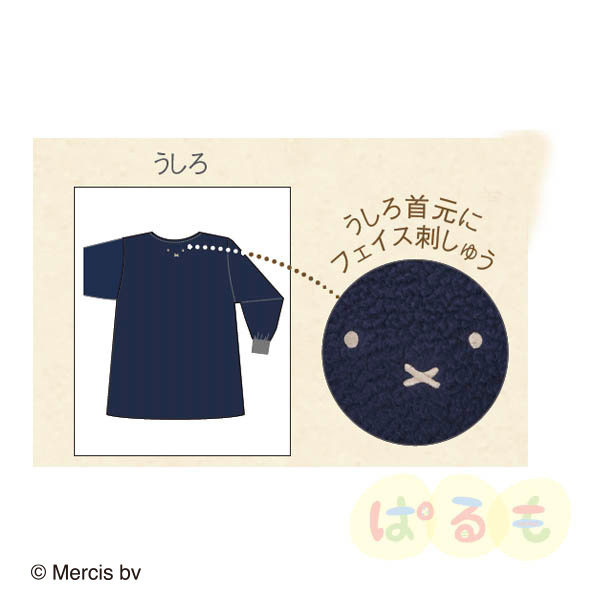 ポケットのテープがポイントのミッフィーのスモックです。ボアフリースで冬でもあったか!