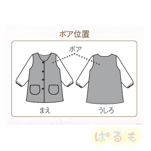 身生地の裏側のボアフリースが暖かいスモックです。袖先はリブ付き。