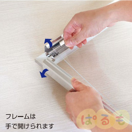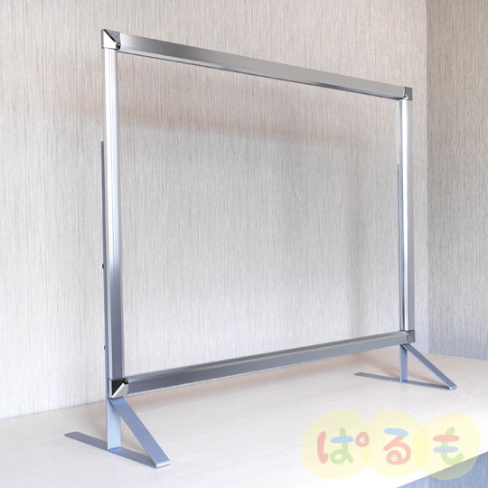 飛沫防止用のパーティションパネルです。パネルは透明なので、対面式の受付窓口に最適。脚付きで書類などの受け渡しもスムーズに行えます。フレームは開閉グリップ式なのでポスターや書類を挟んで掲示できます。
