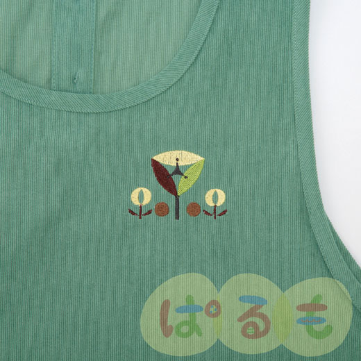ノスタルジックなカラーリングがかわいいエプロンです。コーデュロイ素材とストライプ生地のコンビがカワイイ!