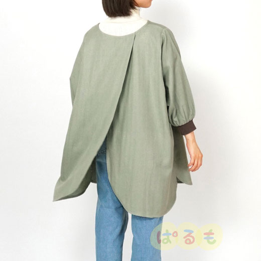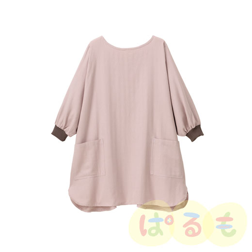 背中が大きく開くので着脱がらくちんなスモックです。袖先はリブ付き。