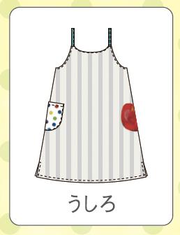 胸元の『はらぺこあおむし』の刺しゅうがかわいいキャミソール型エプロンです。ポケットは両サイドに付いています。
