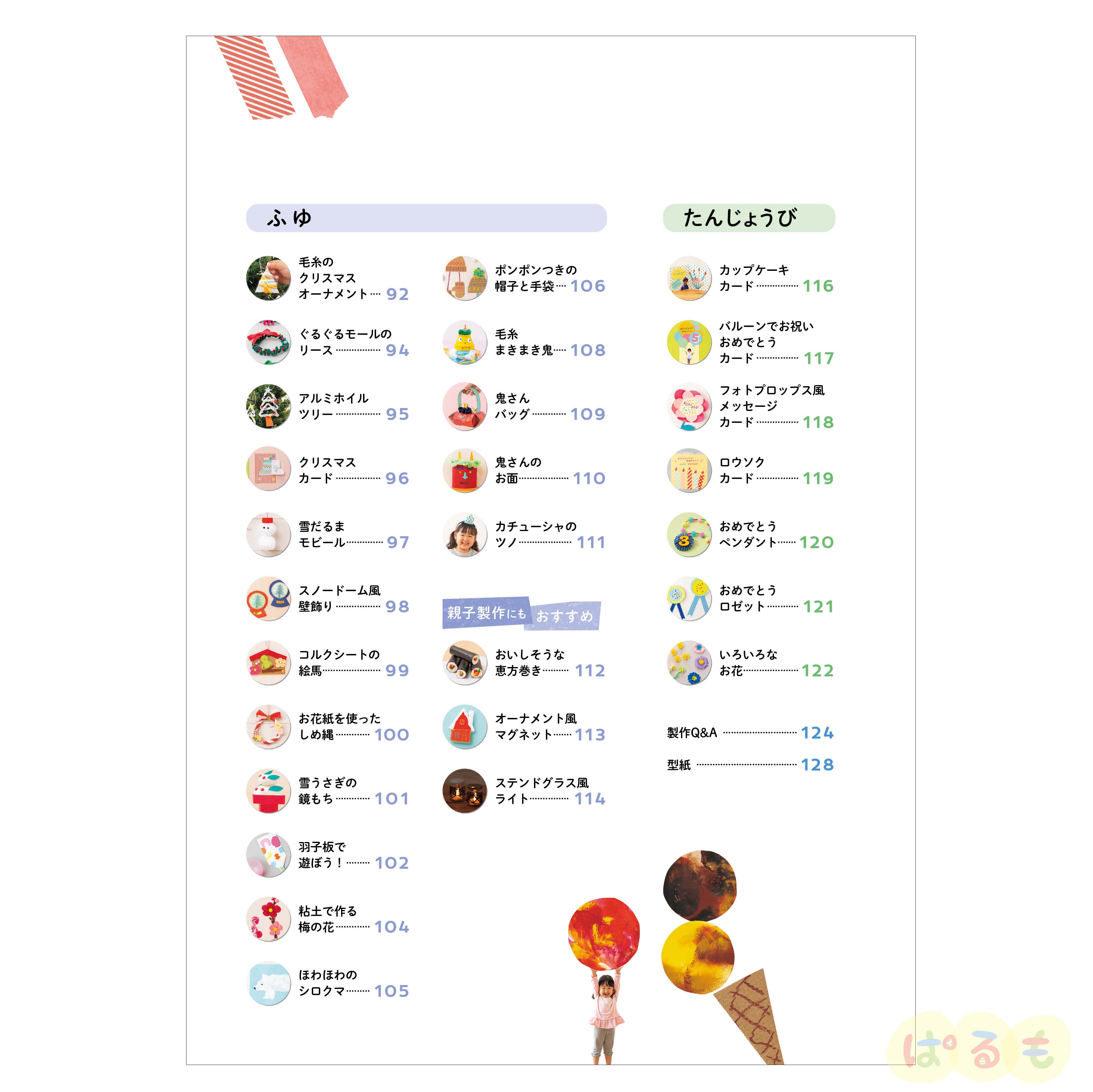 園や家庭でこどもと作れる、おしゃれ感や季節感を盛り込んだ製作遊びアイデアを102案掲載! キャラクターに頼らないおしゃれでナチュラルな作品をこどもたちと一緒に作ってみましょう。