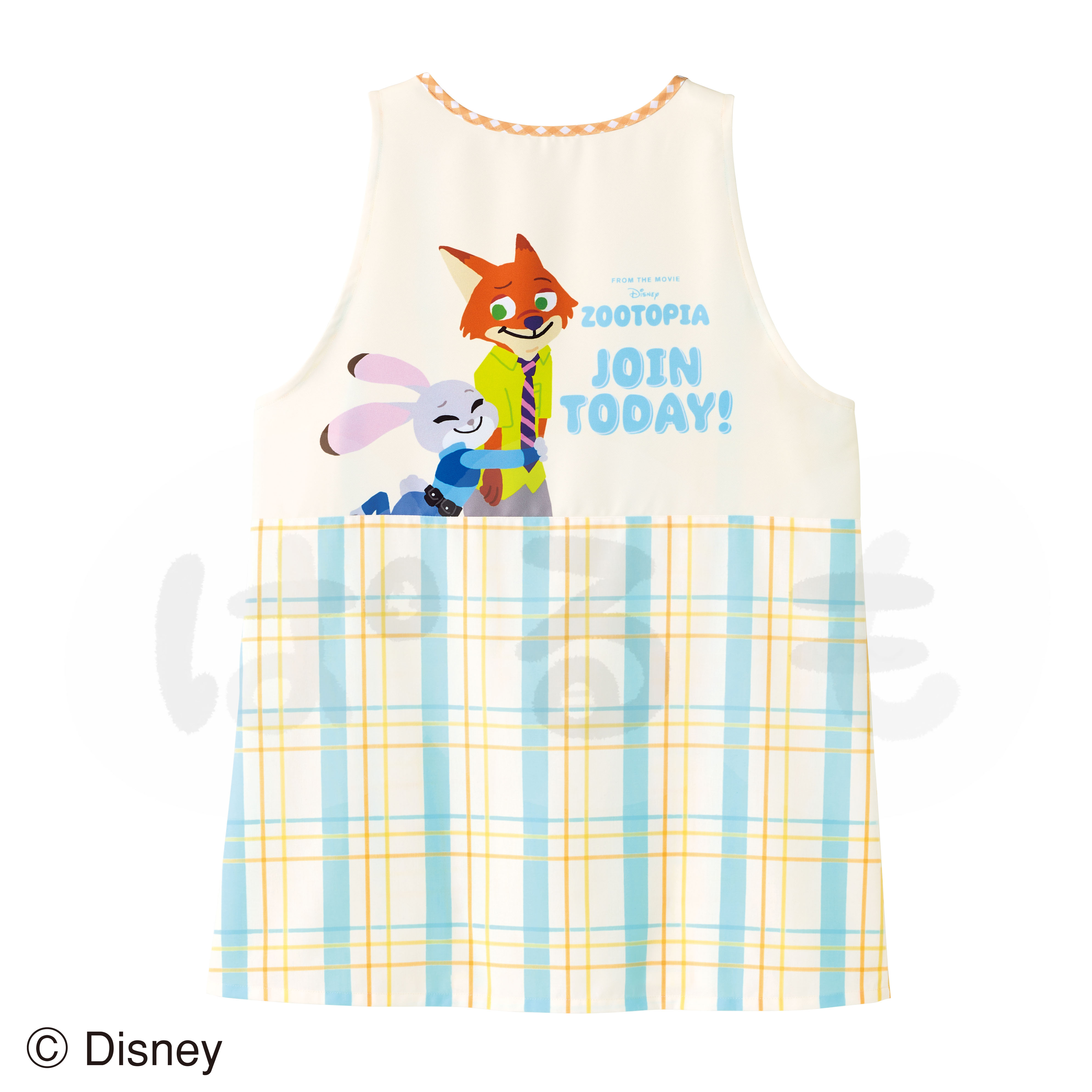 胸のプリントアップリケがかわいい『ズートピア』デザインのエプロンです。